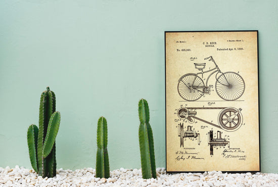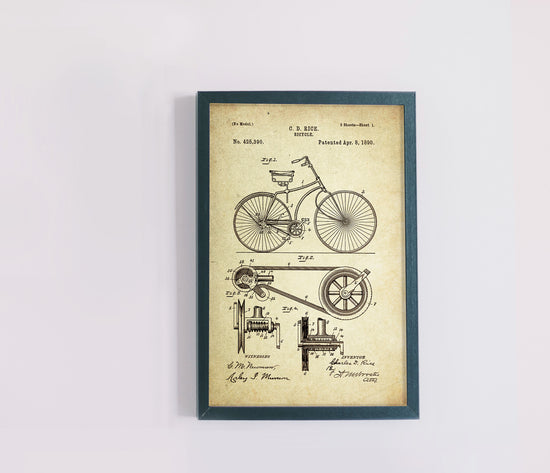 Bicycle Original Patent Poster (1890. Charles. D Rice) Engineer Art